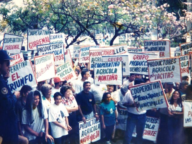 Nuestra respuesta fue la toma pacífica de uno de los galpones otorgados en alquiler al otro inquilino. Resistimos ante la presión de la Guardia Nacional y una demanda penal. Establecimos en el galpón un servicio de distribución de comida a los bodegueros. Hacíamos guardias nocturnas grupales. Y para conseguir el apoyo del gobernador, hicimos una cadena humana de más de 15 cuadras hasta sus oficinas en el centro de la ciudad. En ningún momento interrumpimos el tráfico, mientras pasábamos de mano en mano una enorme piñata en forma de zanahoria -símbolo de nuestros mercados comunitarios-donde estaba la carta que una comisión le entregaría con nuestra petición.